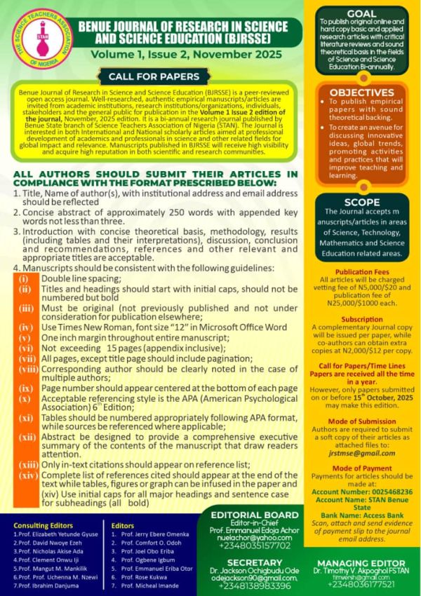 The Benue Journal of Research in Science and Science Education .